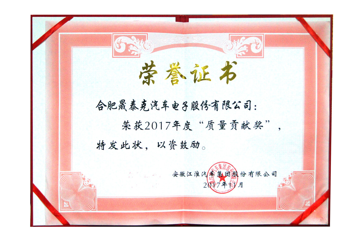 榮譽證書 新車型量產(chǎn)貢獻獎